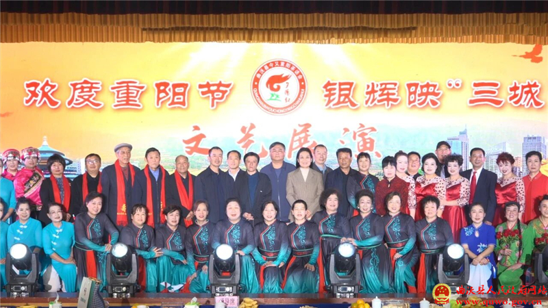之后,活动举办了“欢度重阳节、银辉映‘三城’”文艺展演,为老干部们带来了一场视听盛宴。精彩的开场舞《和谐中国》以欢快的节奏和优美的舞姿,展现了祖国的繁荣昌盛和人民的幸福生活;舞蹈《赞歌》用灵动的肢体语言,表达了对美好生活的赞美和向往;歌曲《我的祝福你听见了吗》《白发亲娘》《孝敬爹和妈》用深情的歌声,唱出了子女对父母的敬爱与感恩之情,让现场观众深受感动。老年大学成员的成果展示更是精彩纷呈,器乐演奏、葫芦丝表演、书法展示和剪纸艺术,充分展现了老年大学学员们的多才多艺和积极向上的精神风貌。蒲剧清唱、非洲鼓舞、群口快板、曲沃琴书、萨克斯伴唱、小品、小合唱等节目也轮番上演,引得阵阵掌声,最后的红歌联舞《再唱山歌给党听》将舞蹈与红歌相结合,表达了对党的热爱和感恩之情,将现场气氛推向高潮。